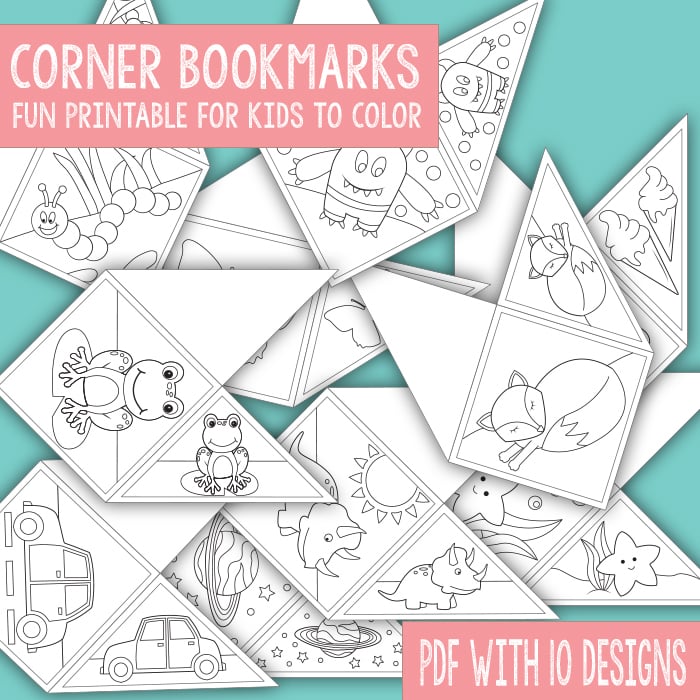 You will receive 10 a PDF file with 10 different corner bookmark designs for your kids to color.